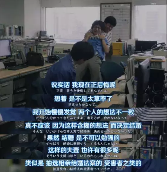 這部劇的制作人河角直樹說,「社會是多樣化的,肯定會有不適用結(jié)婚制度和過去的家庭觀念的情況。但是,在外出工作的女性越來越多的情況下,像“男主外女主內(nèi)”這樣的固定觀念,在現(xiàn)在的日本社會中,在促進差異化的同時,也依然能看到想強加這些觀念的力量存在。」