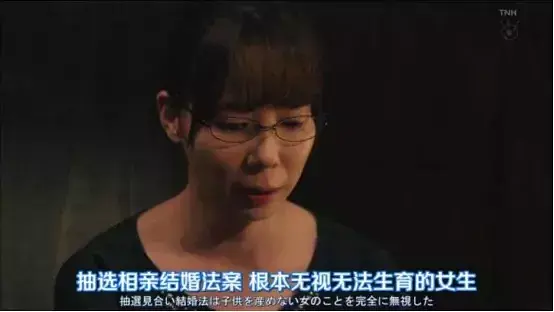 因為子宮頸癌摘除子宮的花村早苗(平巖紙飾)憤怒地說“抽選相親結(jié)婚法案,根本無視無法生育的女性,這法律,到處都是漏洞?!?/span>