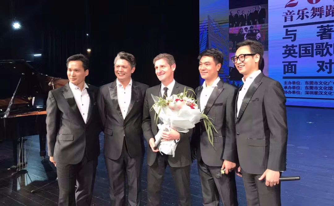 △“太陽之子”男聲四重唱組合與英國著名歌唱家、格萊美獲獎(jiǎng)?wù)?、世界知名組合“國王歌手”前主唱保羅·菲尼克斯曾一起同臺演出。