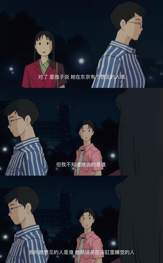 當我昨天晚上健身后從店里走出來,我一下子想起來這部故事背景發(fā)生在幾個夏天的動畫電影。主要是因為想到了這部電影在處理時空跳轉(zhuǎn)時所用的方式,每次都是以插入畫框的方式,閃回時三個畫面的畫框是做小、中、大的變化,反之做大、中、小變化。電影里第一次時空跳轉(zhuǎn)時的第一幅畫面就伴隨著蟬聲,對此我印象特別深,所以就會很自然的想到這部電影。