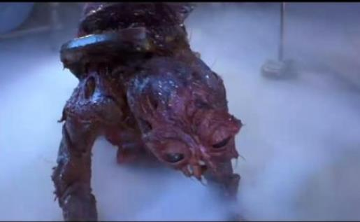 感覺那個(gè)時(shí)候的恐怖片,資金都用在造型上了,嗯,有點(diǎn)惡心的感覺,不過變異嘛,要是還是人的樣子,也不能叫恐怖片了。雖然變異了,但是智慧沒有減少,依然是科學(xué)家,男主希望通過反分解的方式,把蒼蠅從自己的體內(nèi)在分離出來,重新變回正常的人類,但最終還是失敗。
