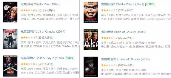 (《鬼娃回魂2》、《鬼娃回魂3》、《鬼娃新娘》、《鬼娃孽種》、《鬼娃的詛咒》、《鬼娃回魂7》)