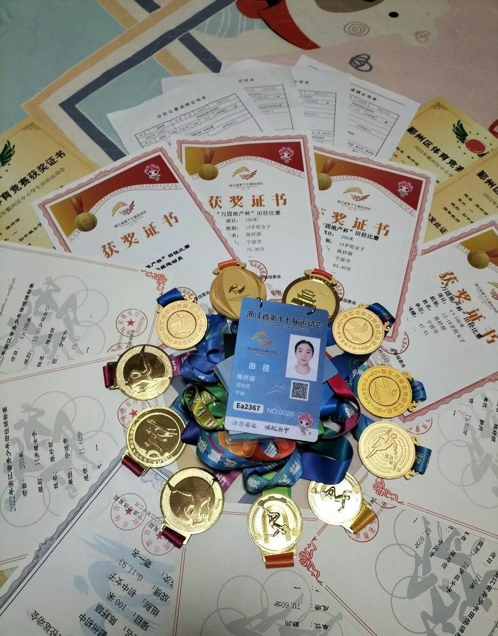 陳妤頡出生于2008年12月,現(xiàn)在是一名初二學生,一邊讀書,一邊在寧波體校走訓。