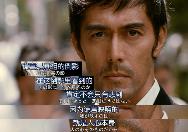 《祈禱落幕時》一度放棄電影敘事法直接用字幕完成過渡和情節(jié)交代,很難判定是偷懶還是敘事能力有問題,情節(jié)仔細(xì)推敲起來也有瑕疵紕漏,但在東野圭吾作品改編影視劇中還算是值得一看的,起碼可以用來感受一下“東野圭吾版《砂器》”和松本清張《砂器》的異同。