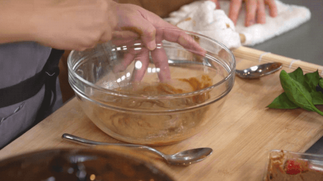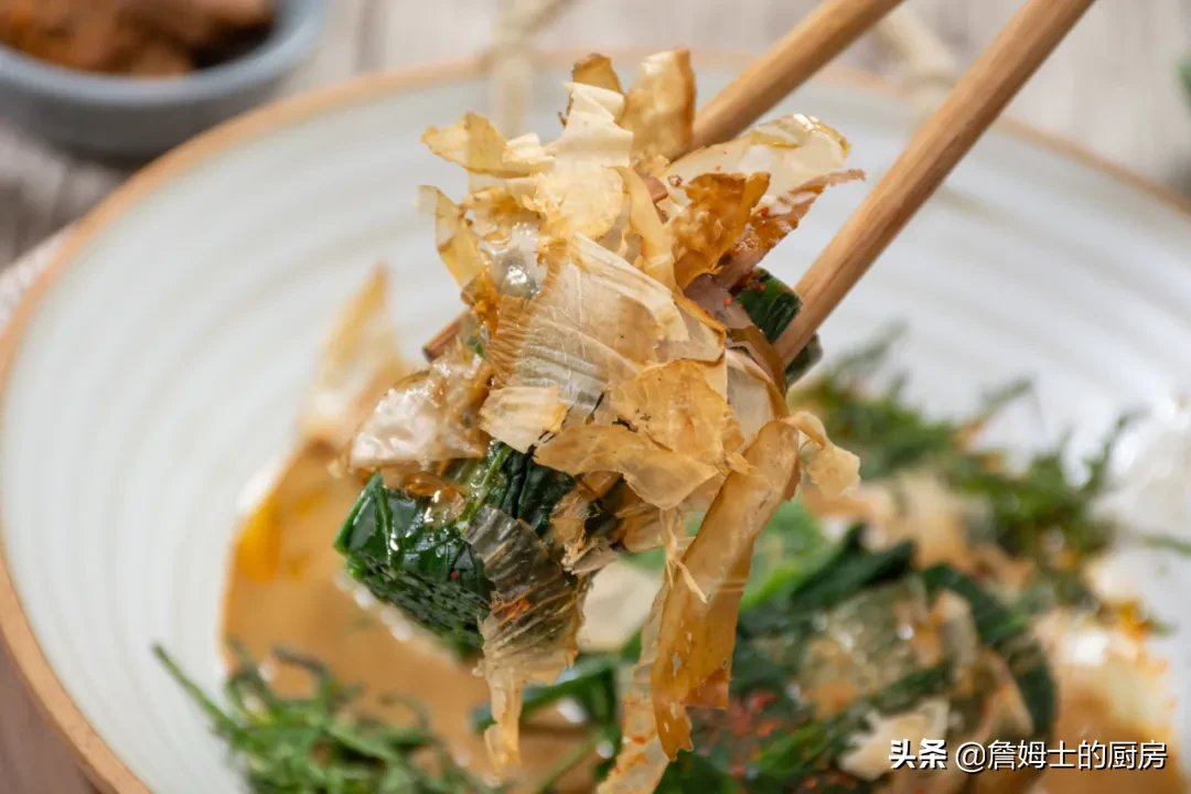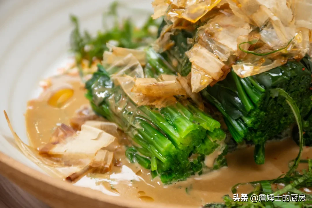 好醬出好菜。不得不說(shuō),詹姆士把芝麻醬和味噌調(diào)在一起的時(shí)候,整個(gè)廚房就充滿了濃郁的芝麻香氣,勾得人一個(gè)勁兒咽口水。
