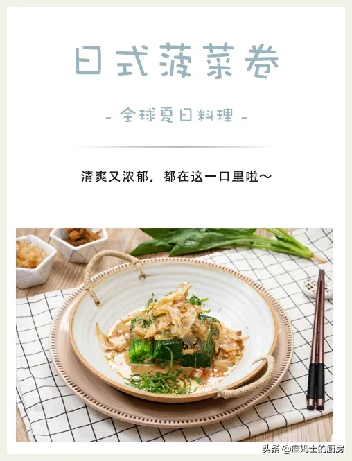 今天,詹姆士要帶來(lái)的這道料理,就是日本的居酒屋料理:日式菠菜卷。非常簡(jiǎn)單易學(xué),不用炒不用煎,新鮮菠菜汆燙一下,淋上秘制的芝麻醬就可以了,芝麻醬濃烈,菠菜卷清爽,吃起來(lái)卻是清涼美味,正適合夏天。