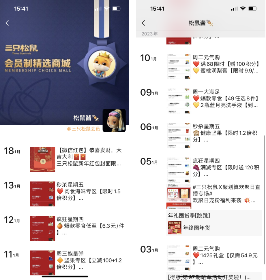 三只松鼠采用了公眾號+小程序+企微+社群的私域運(yùn)營模式,以及各平臺之間相互進(jìn)行引流。