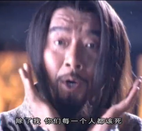 這部大反派換人了,雄霸開場就被殺死,引出了大boss帝釋天。這個面具不亞于《不要和陌生人說話》安嘉和帶給我的童年陰影。李立群老師把這個角色演繹的非常"變態(tài)",戴個冰雕丑陋面具,肢體語言像多動癥兒童……