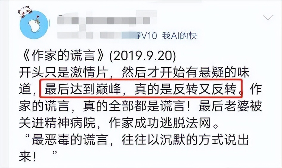 觀眾評價《作家的謊言》時,用得最多的詞就是驚喜和反轉(zhuǎn)。