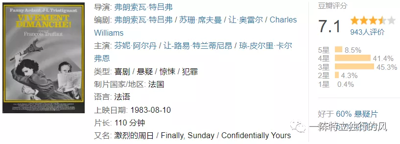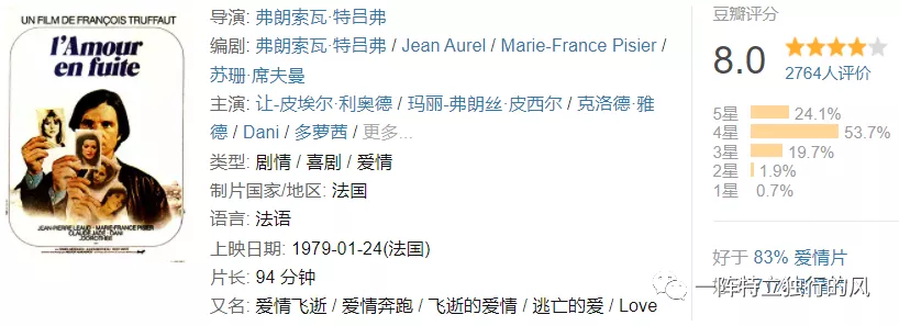 這是一部典型的特呂弗后期的作品,特呂弗也在背叛新浪潮的路上漸行漸遠(yuǎn)。