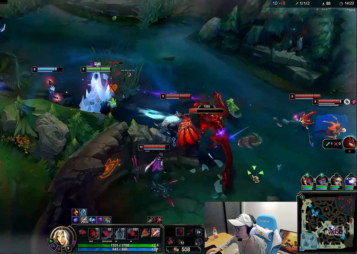 對局中,麻辣香鍋拿到了瑟莊妮,搭配到上路的諾克薩斯之手、中路的塞拉斯、下路雙人組的伊澤瑞爾以及寒冰,這套體系的打團能力非常兇,特別是當(dāng)對局來到19分鐘的中路大團戰(zhàn)中,輔助醬狗冰女關(guān)鍵一箭命中對手將團戰(zhàn)開啟,隨后lml眾人一擁而上,香鍋的豬妹抗住了對手兩個人的傷害,而后又在龍團擊殺對手數(shù)人。