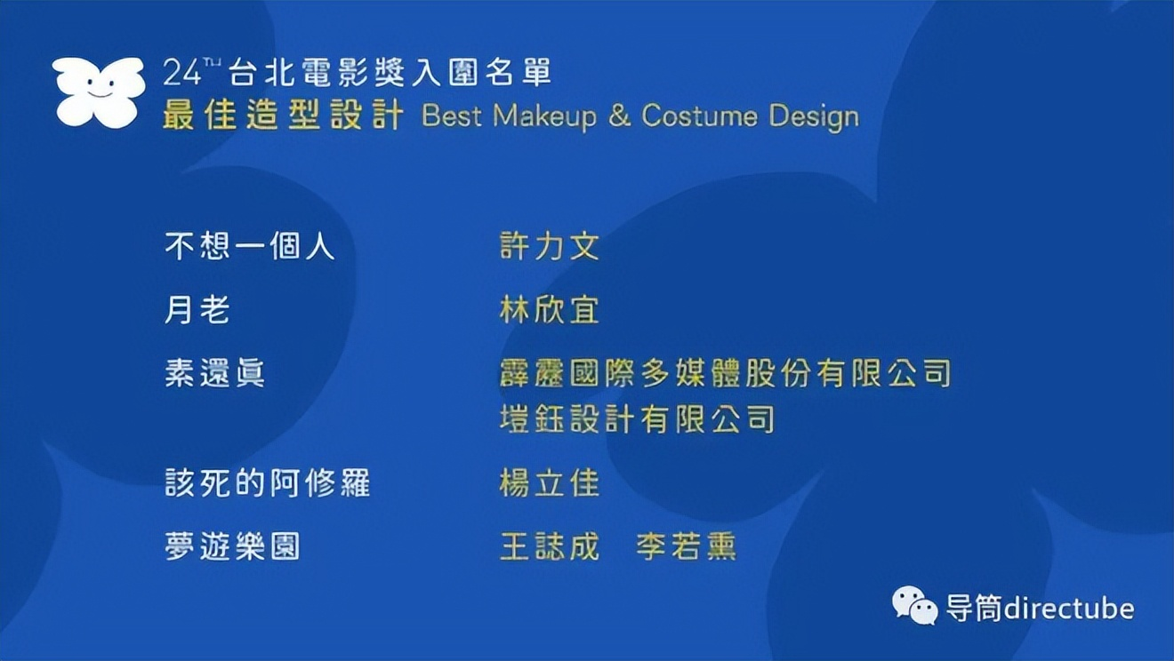 最佳美術(shù)設(shè)計(jì)陳柏任《不想一個(gè)人》王志成《月老》陳若宇《咒》陳昱璇《美國(guó)女孩》王志成、楊雅珺《夢(mèng)游樂(lè)園》