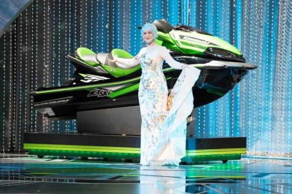 海倫·米倫展示水上摩托大獎(jiǎng)。