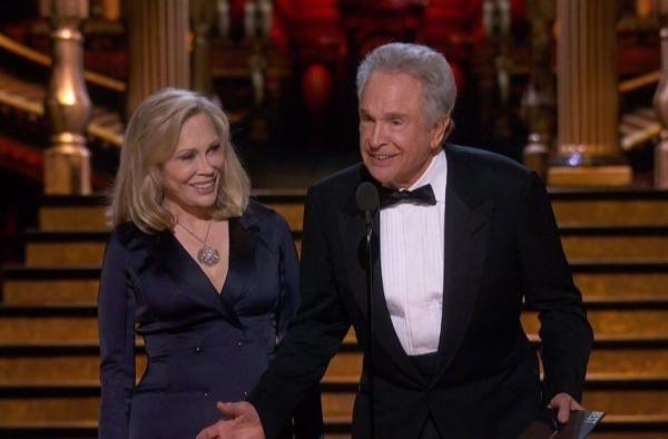去年烏龍事件的臺(tái)上主角沃倫·比蒂和費(fèi)·唐娜薇又回來(lái)了,沃倫說(shuō):“感謝大家,很高興再次跟你們見面?!?最佳影片仍由他倆頒發(fā)。
