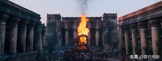 而最讓人難忘的另一幕是火海中的特洛伊,一座堅(jiān)不可摧、易守難攻的城池隕落,被火焰攻陷,被不義的戰(zhàn)爭(zhēng)殺掠。