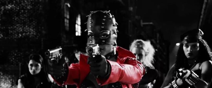 《罪惡之城》以其獨特的視覺風格和特色而備受贊譽。電影采用高對比度的黑白畫面,突出強烈的漫畫感,同時通過鮮紅的血液和飽和的色彩來強調(diào)關鍵元素,展現(xiàn)出多樣的攝影技巧,如慢動作和旋轉(zhuǎn)鏡頭等,以增強戲劇性的效果。