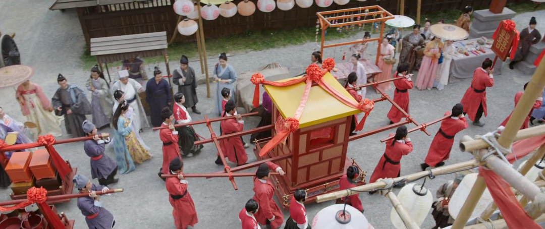 開頭紅色系的古風婚禮,不論是配樂還是喬欣的新娘扮相都走的“唯美”路線,用的演員原聲也是“甜美軟糯”系。不成想,這部劇開局就給“炸”。
