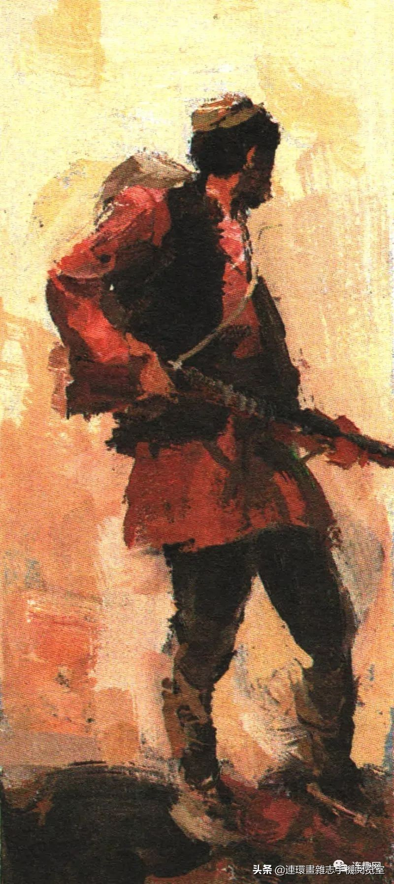 7.天蒙蒙亮時,他已到了藏槍的地方,把槍從巖縫里摸出來,沿著峽谷走去。谷底有條小河,河中巨石累累,河水繞著這些巨石歡唱。風很大,他低著頭迎風疾走。