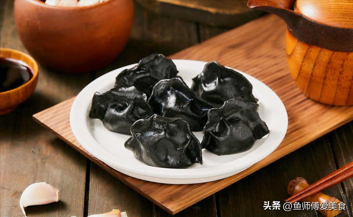 新鮮的墨魚,含有豐富的墨魚汁兒,用墨魚汁兒調(diào)面,做出墨魚餃子,面皮是黑色的,里面的餡料含有墨魚肉,風(fēng)味獨特鮮美,造型奇特新穎,非常受歡迎。