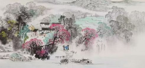 層林漫卷霜霞染,靄霧輕紗掩映村。