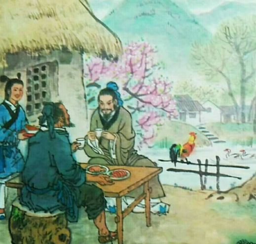 邀上坐,品茗茶。屋前把酒話桑麻。