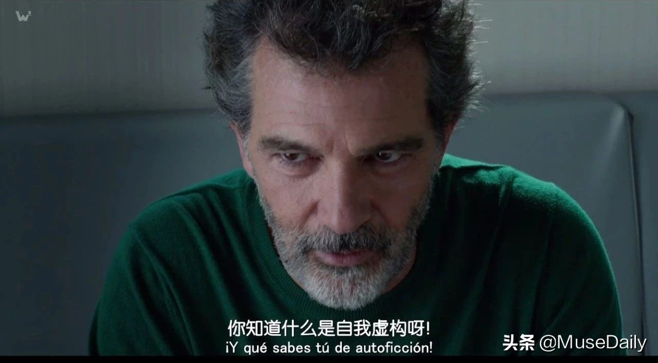 作為一部帶有自傳色彩的“虛構(gòu)作品”,阿莫多瓦導(dǎo)演運(yùn)用了戲中戲的手法,借虛構(gòu)的手法去認(rèn)知與表達(dá)自我,這份真誠,觀眾們也能從他的鏡頭中體會到一二。