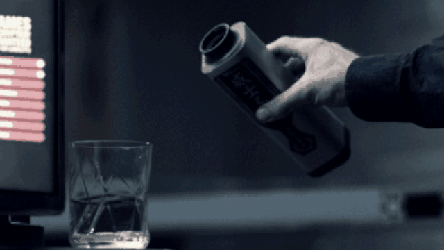 在通過旋轉(zhuǎn)產(chǎn)生模擬重力的小行星上,倒水是這樣: