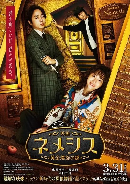 由演員廣瀨鈴、人氣偶像組合嵐的成員櫻井翔共同主演的《電影版 涅墨西斯 黃金螺旋之謎》將于明年3月31日上映。作為新時代的偵探故事,去年4月本作曾在日本電視臺作為連續(xù)劇播出,電影版以連續(xù)劇大結(jié)局的故事2年后為舞臺。繼電視劇之后,演員江口洋介也將繼續(xù)出演本作,導(dǎo)演由入江悠擔任。