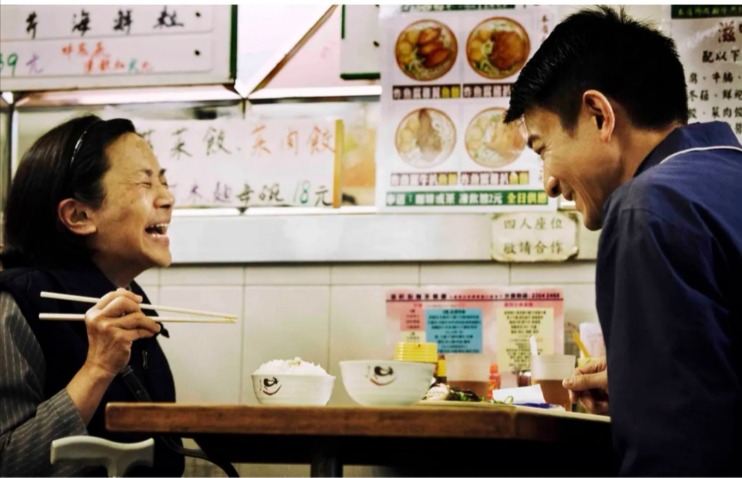 羅杰哪怕工作再繁忙,也總會在空閑乘車去桃姐那里看望,旁人也總是羨慕不已。別人議論羅杰與桃姐沒有血緣,羅杰便一口承認(rèn)自己是桃姐的干兒子。每當(dāng)來看望桃姐,羅杰總會帶桃姐去外面散步。在公交車上沒有座位,會有善良的人為身體不便的桃姐讓座;去將近客滿的餐館吃飯,也有人為兩人騰讓地方。點(diǎn)菜不要蠔油、油、鹽等調(diào)料,吃的營養(yǎng)清淡,雖遠(yuǎn)不及桃姐所做的飯菜,但二人的氛圍格外溫馨。羅杰與同學(xué)幾人聚在家里打牌,吃著桃姐之前做的牛舌,大家也都對桃姐十分懷念,打給桃姐一一慰問,桃姐心中也倍感溫暖。